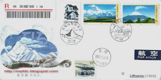 This FDC was sent to my Lithuania friend on issue day by registered mail. There are 2 special cancellation on the FDC, right one is China special cancellation, left one is Shanghai special cancellation.